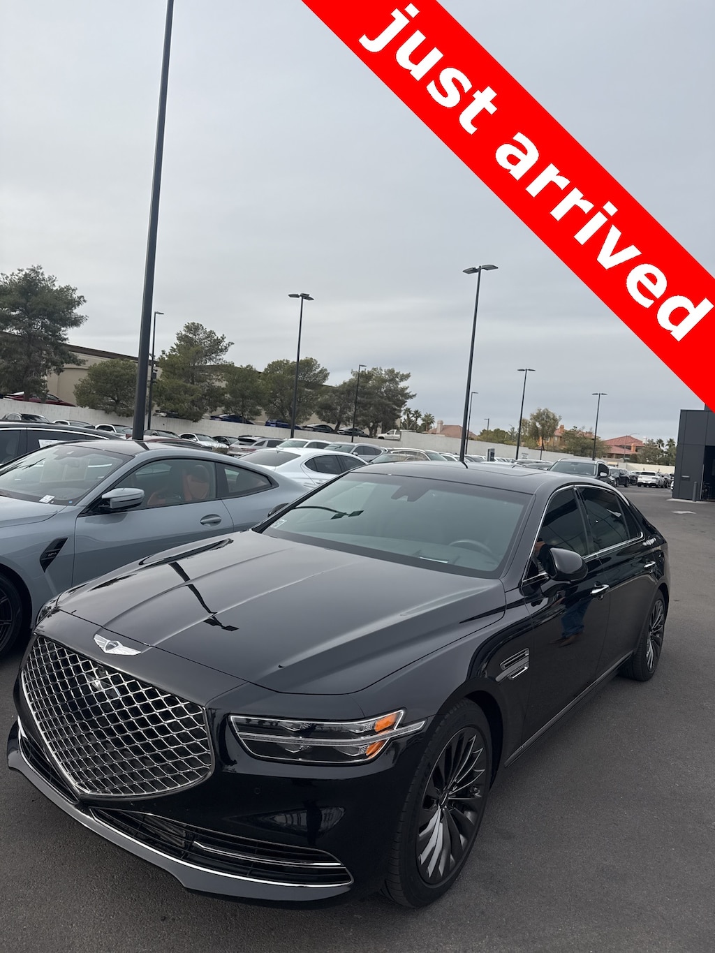 THIS VEHICLE IS EQUIPPED WITH THE FOLLOWING OPTIONS AND FEATURES: Dark Finish Wheel Option (02) (Wheels: 19 Dark Finish), 17 Speakers, 19 Alloy Wheels, 4-Wheel Disc Brakes, ABS brakes, Adaptive suspension, Air Conditioning, Alloy wheels, AM/FM radio: SiriusXM, Android Auto & Apple CarPlay, Anti-whiplash front head restraints, Auto High-beam Headlights, Auto tilt-away steering wheel, Auto-dimming door mirrors, Auto-dimming Rear-View mirror, Auto-leveling suspension, Automatic temperature control, Brake assist, Bumpers: body-color, Compass, Delay-off headlights, Door auto-latch, Driver door bin, Driver vanity mirror, Dual front impact airbags, Dual front side impact airbags, DVD-Audio, Electronic Stability Control, Emergency communication system: Genesis Connected Services, Four wheel independent suspension, Front anti-roll bar, Front Bucket Seats, Front Center Armrest, Front dual zone A/C, Front reading lights, Fully automatic headlights, Garage door transmitter: HomeLink, Genuine wood console insert, Genuine wood dashboard insert, Genuine wood door panel insert, Head restraints memory, Heads-Up Display, Heated & Ventilated Front Bucket Seats, Heated door mirrors, Heated front seats, Heated rear seats, Heated steering wheel, Illuminated entry, Knee airbag, Leather Shift Knob, Leather steering wheel, Low tire pressure warning, Memory seat, Nappa Leather Seating Surfaces, Navigation System, Occupant sensing airbag, Outside temperature display, Overhead airbag, Overhead console, Panic alarm, Passenger door bin, Passenger vanity mirror, Power adjustable front head restraints, Power door mirrors, Power driver seat, Power moonroof, Power passenger seat, Power steering, Power windows, Radio data system, Radio: AM/FM/HD/SiriusXM/CD/DVD Audio System, Rain sensing wipers, Rear air conditioning, Rear anti-roll bar, Rear reading lights, Rear seat center armrest, Rear side impact airbag, Rear Window Blind, Rear window defroster, Remote CD player, Remote keyless entry, Security system, Speed control, Speed-sensing steering, Speed-Sensitive Wipers, Steering wheel memory, Steering wheel mounted audio controls, Tachometer, Telescoping steering wheel, Tilt steering wheel, Traction control, Trip computer, Turn signal indicator mirrors, Variably intermittent wipers, and Ventilated front seats. Recent Arrival!