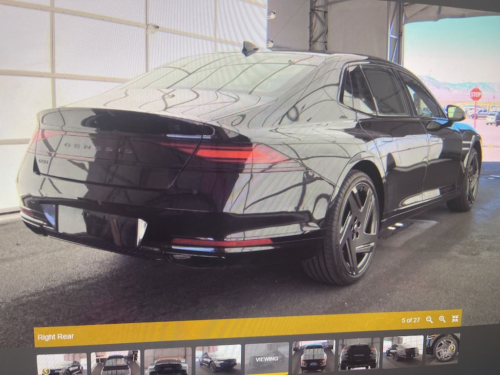 THIS VEHICLE IS EQUIPPED WITH THE FOLLOWING OPTIONS AND FEATURES: Option Group 01, 4-Wheel Disc Brakes, ABS brakes, Adaptive suspension, Air Conditioning, Alloy wheels, AM/FM radio: SiriusXM, Anti-whiplash front head restraints, Auto High-beam Headlights, Auto tilt-away steering wheel, Auto-dimming door mirrors, Auto-dimming Rear-View mirror, Automatic temperature control, Brake assist, Compass, Delay-off headlights, Driver door bin, Driver vanity mirror, Dual front impact airbags, Dual front side impact airbags, Electronic Stability Control, Emergency communication system: Genesis Connected Services, Exterior Parking Camera Rear, Four wheel independent suspension, Front anti-roll bar, Front Bucket Seats, Front Center Armrest, Front dual zone A/C, Front reading lights, Fully automatic headlights, Garage door transmitter: HomeLink, Genuine wood console insert, Genuine wood dashboard insert, Genuine wood door panel insert, Heads-Up Display, Heated and Ventilated Front Bucket Seats, Heated front seats, Heated rear seats, Heated steering wheel, Illuminated entry, Knee airbag, Low tire pressure warning, Memory seat, Navigation System, Occupant sensing airbag, Outside temperature display, Overhead airbag, Overhead console, Panic alarm, Passenger door bin, Passenger vanity mirror, Power adjustable rear head restraints, Power door mirrors, Power driver seat, Power moonroof, Power passenger seat, Power steering, Power windows, Radio data system, Radio: AM/FM Bang & Olufsen 3D Prem Audio System, Rain sensing wipers, Rear air conditioning, Rear anti-roll bar, Rear reading lights, Rear seat center armrest, Rear side impact airbag, Rear Window Blind, Rear window defroster, Remote keyless entry, Security system, Semi-Aniline Leather Seating Surfaces, Speed control, Speed-sensing steering, Speed-Sensitive Wipers, Steering wheel memory, Steering wheel mounted audio controls, Tachometer, Telescoping steering wheel, Tilt steering wheel, Traction control, Trip computer, Variably intermittent wipers, Ventilated front seats, Ventilated rear seats, and Wheels: 21 x 8.5J Fr & 21 x 9.5J Rr Matte Black. Recent Arrival!